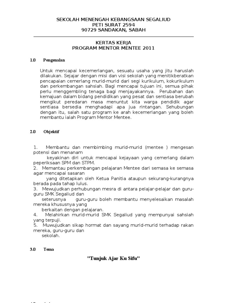 Kertas Kerja Mentor Mentee 2009 Pdf